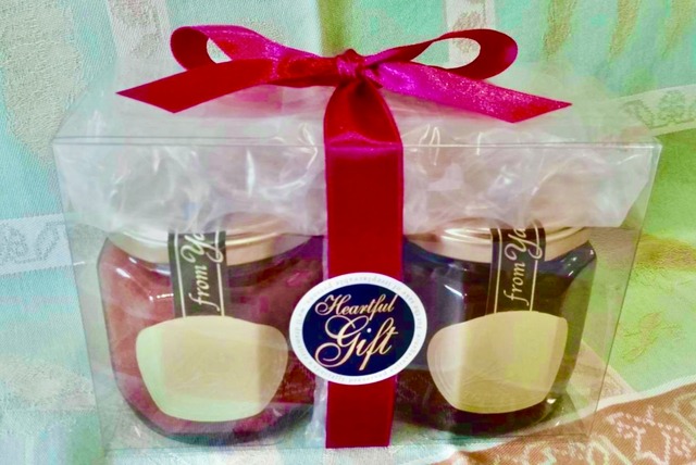 Mサイズのジャムが2本入ります。 透明なお箱にリボンをおかけします。 ご依頼主様あての配送の場合、手提げ袋がつきます。 熨斗、包装紙はご利用いただけません。 以下にご注意下さい *セットの内訳が必要な場合は、お会計時に備考欄へお書き下さい。 *Lサイズは入りません。
